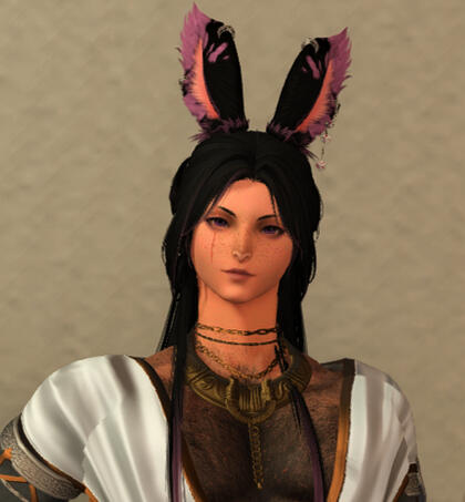 Thirty-one cycles (and still young for a bun!).Born of a troupe of actors, comedians, bards, and dancers, never had a place to call home that wasn't a wagon or a pillion.Found a home in Eorzea, the icy lands of Ishgard, on the cliffs of Empyreum, in the twenty third ward at the thirty-third plot, called The Den.A sprightly six fonz six ilms, yet never one to use height as leverage.210 ponzes of pure bunny muscle, in a compacted package.A soft voice, gentle like the breeeze, amusing when excited, and firm when serious.Of an average build, if average is a rather tall speciment of a bun. All natural where it counts.Easily seen by the clash of black and pink, the feature of a kit who never got to reach the world.A naturally curious bun, wanting to find a place in the world.